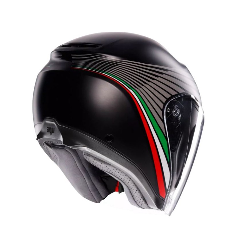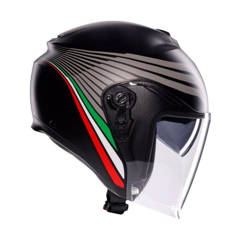 Irides è il nuovo casco jet AGV in materiale termoplastico, omologato ECE2206, progettato per garantire protezione e comfort negli spostamenti urbani di tutti i giorni. Casco dal design pulito e moderno, estremamente curato nei dettagli della placca laterale, è caratterizzato da una visiera allungata, sinonimo di protezione, dotata di meccanismo di chiusura magnetica VMS (Visor Magnetic System), per una massima stabilità e comodità anche a velocità elevate. La visiera, predisposta per alloggiare la lente antiappannamento Pinlock® 70 (disponibile come accessorio) e il visierino parasole regolabile assicurano una visibilità ottimale in qualsiasi condizione, sia nelle giornate di sole che in quelle più miti, quando lo sbalzo termico fra l'ambiente e l'interno del casco potrebbe causare fastidiosi appannamenti. Il comfort termico all'interno del casco è garantito dalla presa d'aria superiore regolabile e dall'estrattore posteriore, che facilitano lo scambio fra l'aria calda all'interno del casco e quella proveniente dall'esterno. La configurazione interna di Irides assicura una vestibilità ottimale grazie alla personalizzazione della calzata: sono disponibili guanciali di diverso spessore, perfettamente intercambiabili fra tutte le taglie del casco, per un totale di 24 possibili configurazioni. Tutti gli interni, compreso il sottogola, sono completamente removibili e lavabili. Perfetto per le uscite urbane di tutti i giorni, Irides è un casco ad elevata funzionalità: negli spostamenti quotidiani la chiusura micrometrica, l'anello antifurto utile per riporre il casco in massima sicurezza e la predisposizione per i più moderni sistemi di comunicazione diventano caratteristiche irrinunciabili.