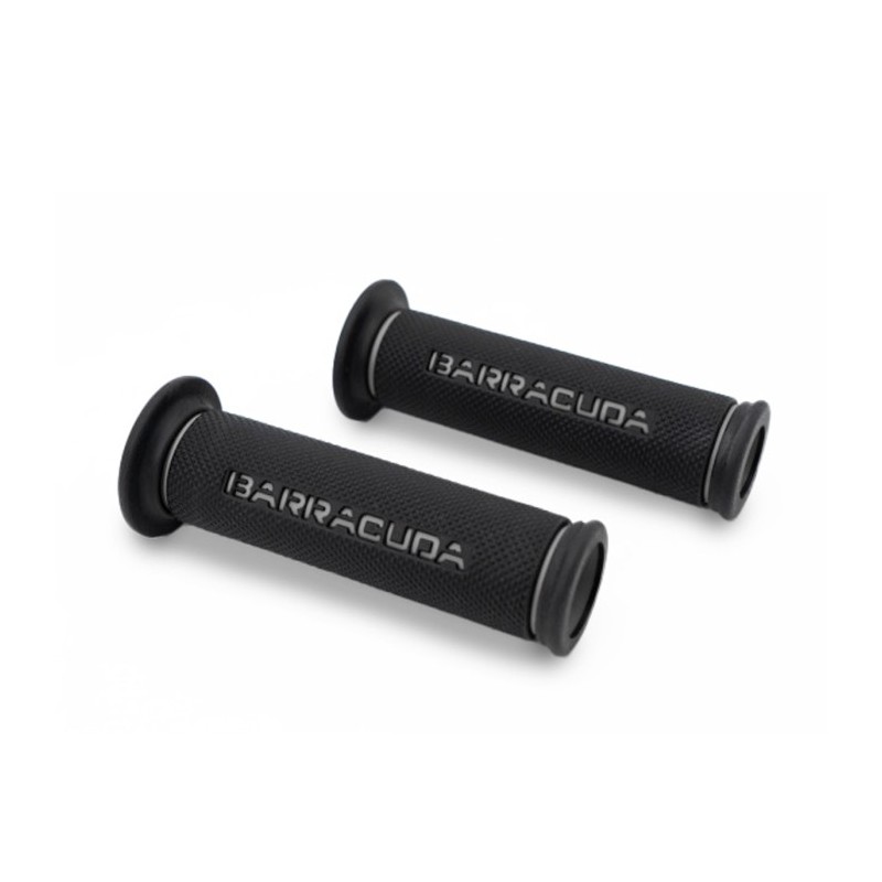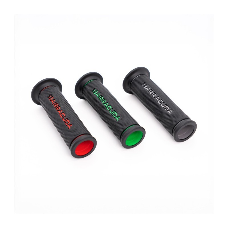 Le MANOPOLE BASIC RACING sono realizzate in resistente GOMMA in colorazione NERA con il logo BARRACUDA inciso nella gomma in rosso, grigio e verde.