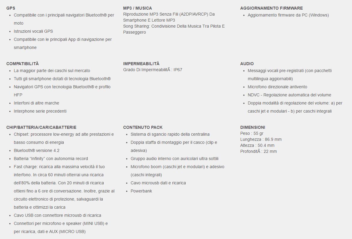 Compatibile con tutti i tipi di casco, Interphone Tour è totalmente impermeabile, ha una batteria con autonomia record di oltre 20 ore ed è in grado di ricaricarsi molto velocemente grazie alla tecnologia Fast Charge.