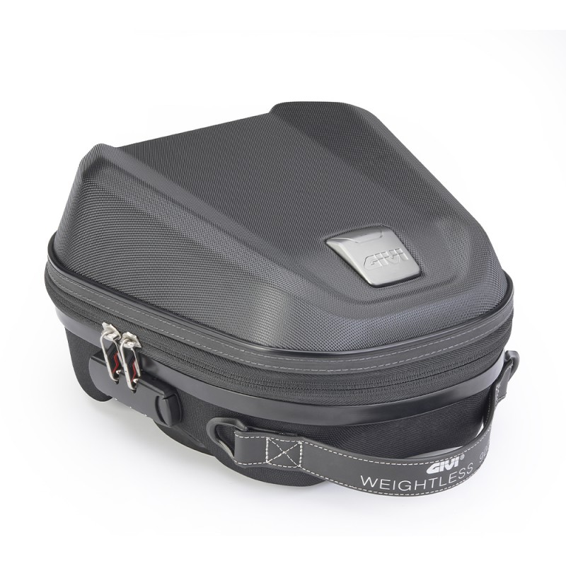 La borsa da serbatoio della linea Weightless completa la possibilità di un allestimento semirigido completo, offrendo un look “total black” con texture diamantina particolarmente adatto a moto dall’animo turistico e sportivo.