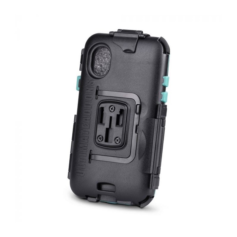 Custodia rigida per iPhone X con aggancio per manubri tubolari.