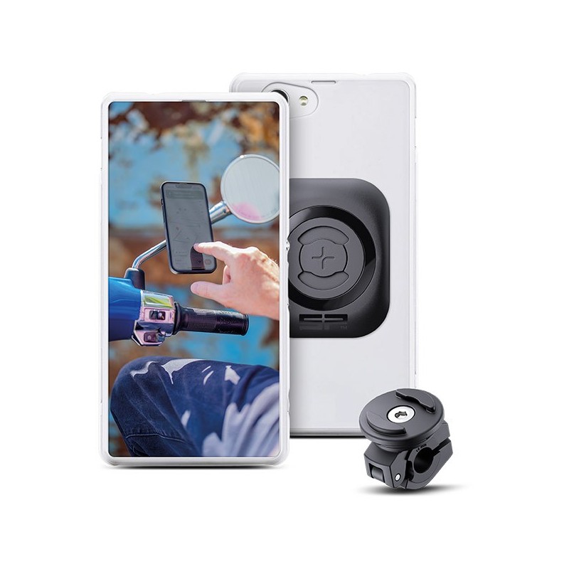 Il Moto Scooter Bundle Universal Interface SPC+ include tutti i componenti per fissare lo smartphone allo specchietto o al manubrio del ciclomotore o della moto in modo rapido e sicuro.Montate il supporto incluso nel set sullo specchietto o su un manubrio sottile rapidamente. Questa soluzione di montaggio è adatta per il fissaggio dello smartphone in formato orizzontale e verticale.