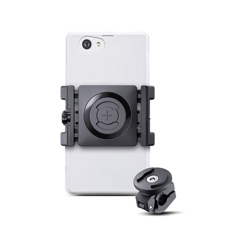 Il Moto Scooter Bundle Universal Clamp SPC+ include tutti i componenti per fissare lo smartphone allo specchietto o al manubrio del ciclomotore o della moto in modo rapido e sicuro.Montate il supporto incluso nel set sullo specchietto o su un manubrio sottile rapidamente. Questa soluzione di montaggio è adatta per il fissaggio dello smartphone in formato orizzontale e verticale.